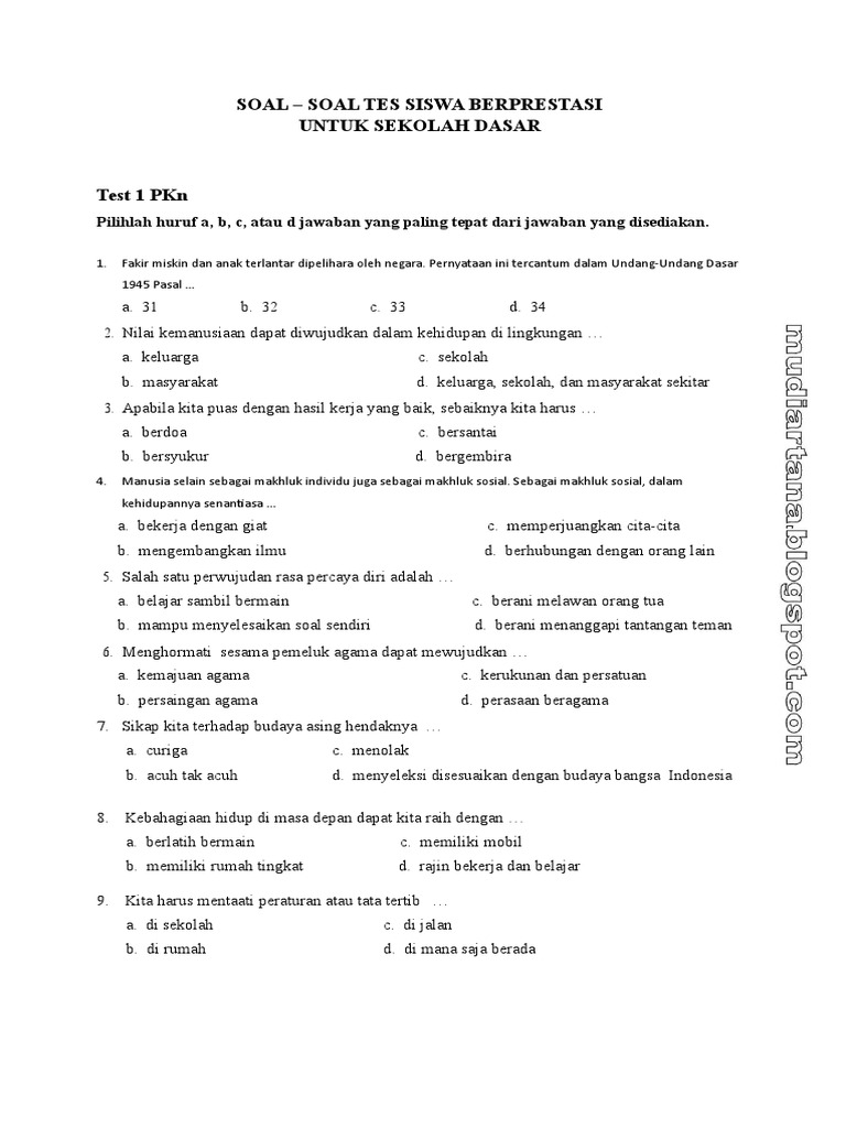 Soal Siswa Berprestasi Pkn Sd Jawabanku Id from 0.academia-photos.com Hasil dari 756 x 12 : Contoh soal tes guru berprestasi dan kunci jawaban format pdf. Salah satu upaya dalam meningkatkan kompetensi dan menumbuhkan keteladanan guru di indonesia, maka pemerintah dalam hal ini kementrian pendidikan dan kebudayaan melalui direktorat jenderal guru dan tenaga kependidikan. Tanaman anggrek dapat tumbuh menempel pada pohon dan tumbuh di tanah. Sedangkan untuk jawaban isian dan pertanyaan soal uts pkn kelas 3 sd dibawah ini Karena sebagai anak, chandra harus berbakti kepada orang tua. Simpan simpan soal dan jawaban eliminasi dan konsolidasi untuk nanti. December 18, 2018 3 comments edit.