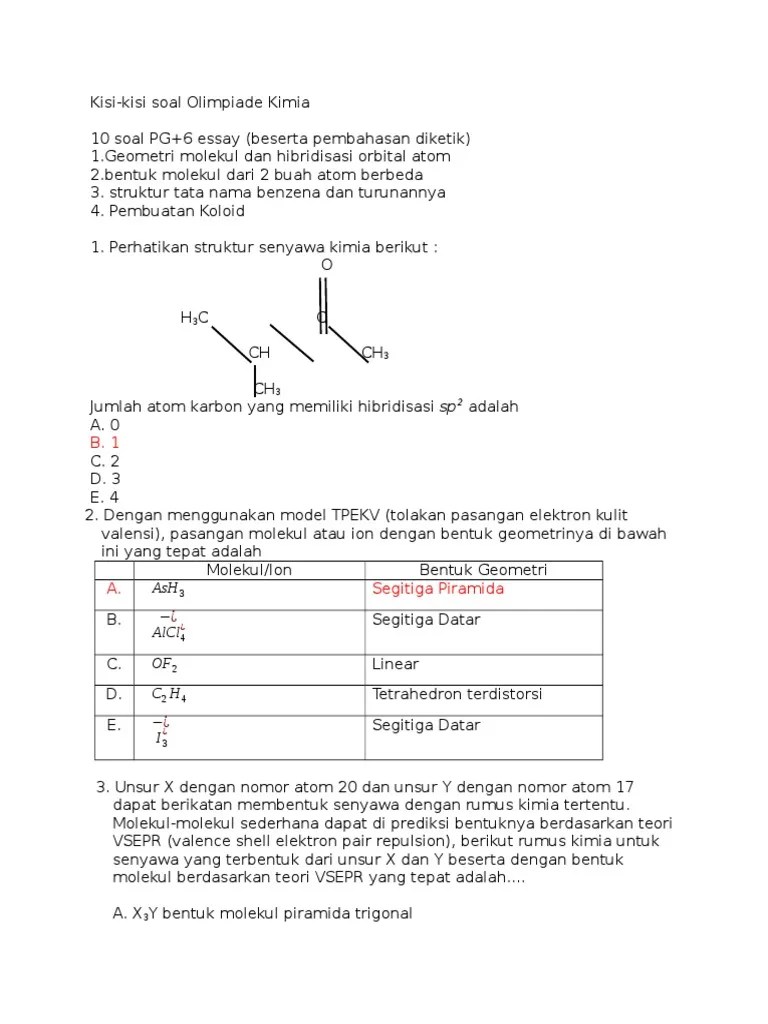Contoh Soal Pilihan Ganda Bentuk Molekul Dan Jawabannya / Bentuk Molekul Dan Gaya Antar Molekul A Teori - Pembahasan soal osk kimia tahun 2019 nomor 1 10 pembahasan soal pilihan ganda osk 2017 bidang kimia.